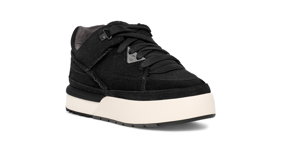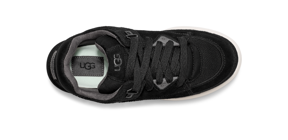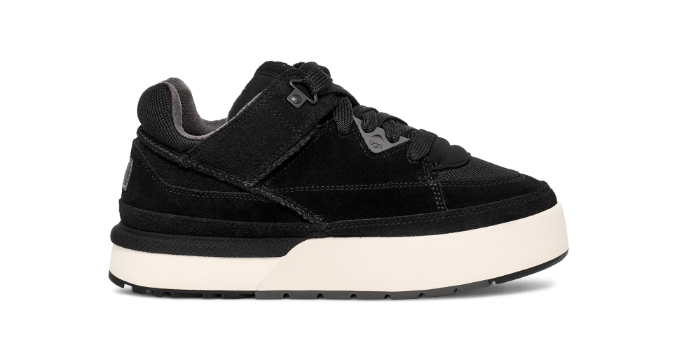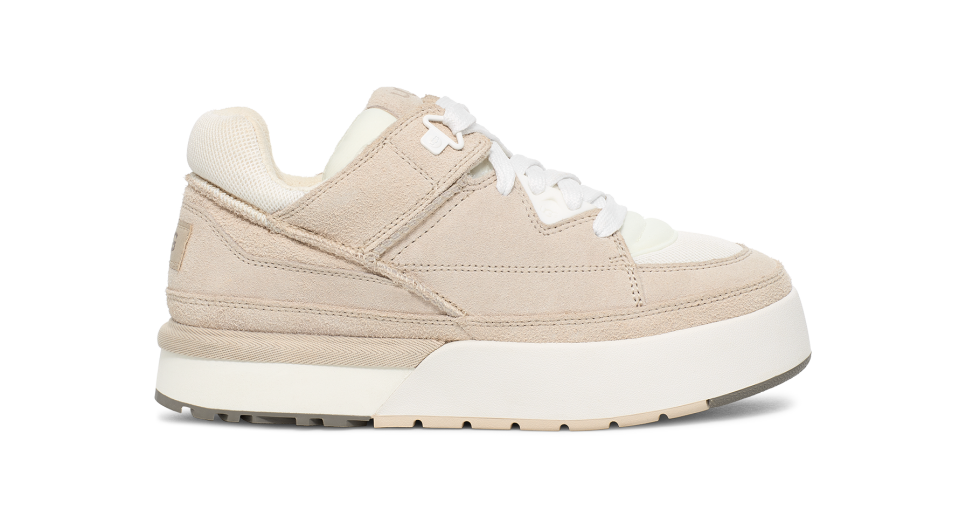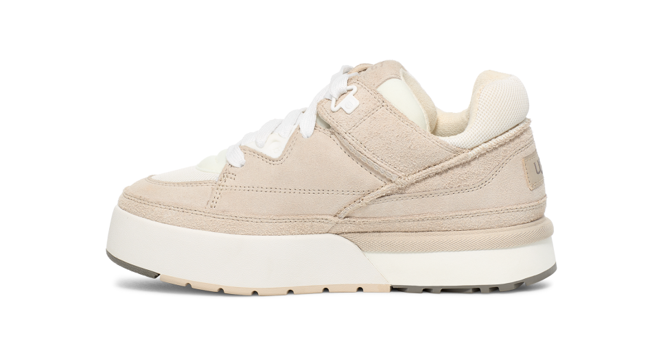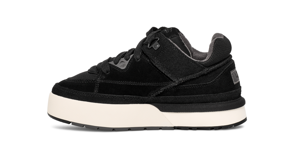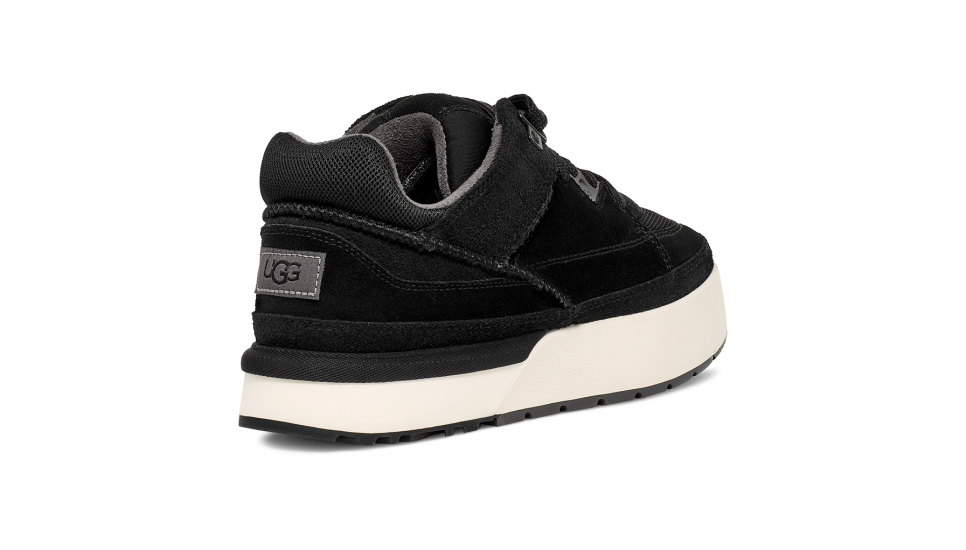 - Suede, Mesh, Textile padded tongue, Classic boot inspired TPU heel stabalizer, Textile made with 50% recycled polyester and 50% virgin polyester fibers upper