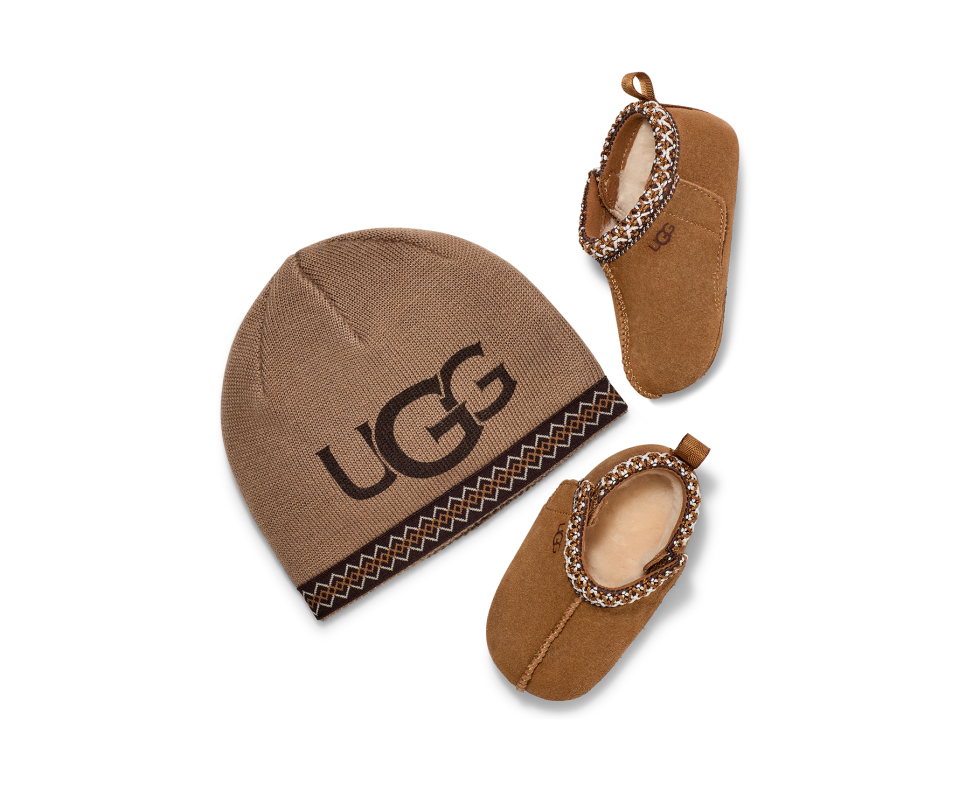 - Blended Polyester and Nylon knit hat with printed UtthhGG® logo