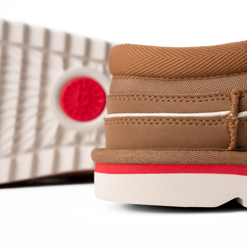 - Canvas with non-wicking (100% recycled polyester), Reconstituted leather used in the vamp overlay is made with 60% recycled leather, 20% polyester fibers and 20% polyurethane resin upper