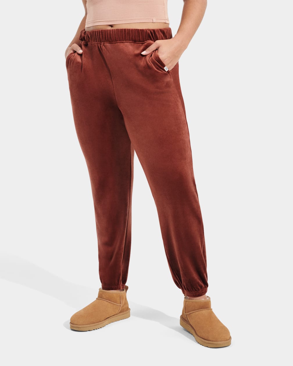 - UGG® woven flag label clamped on wearer's left side pocket