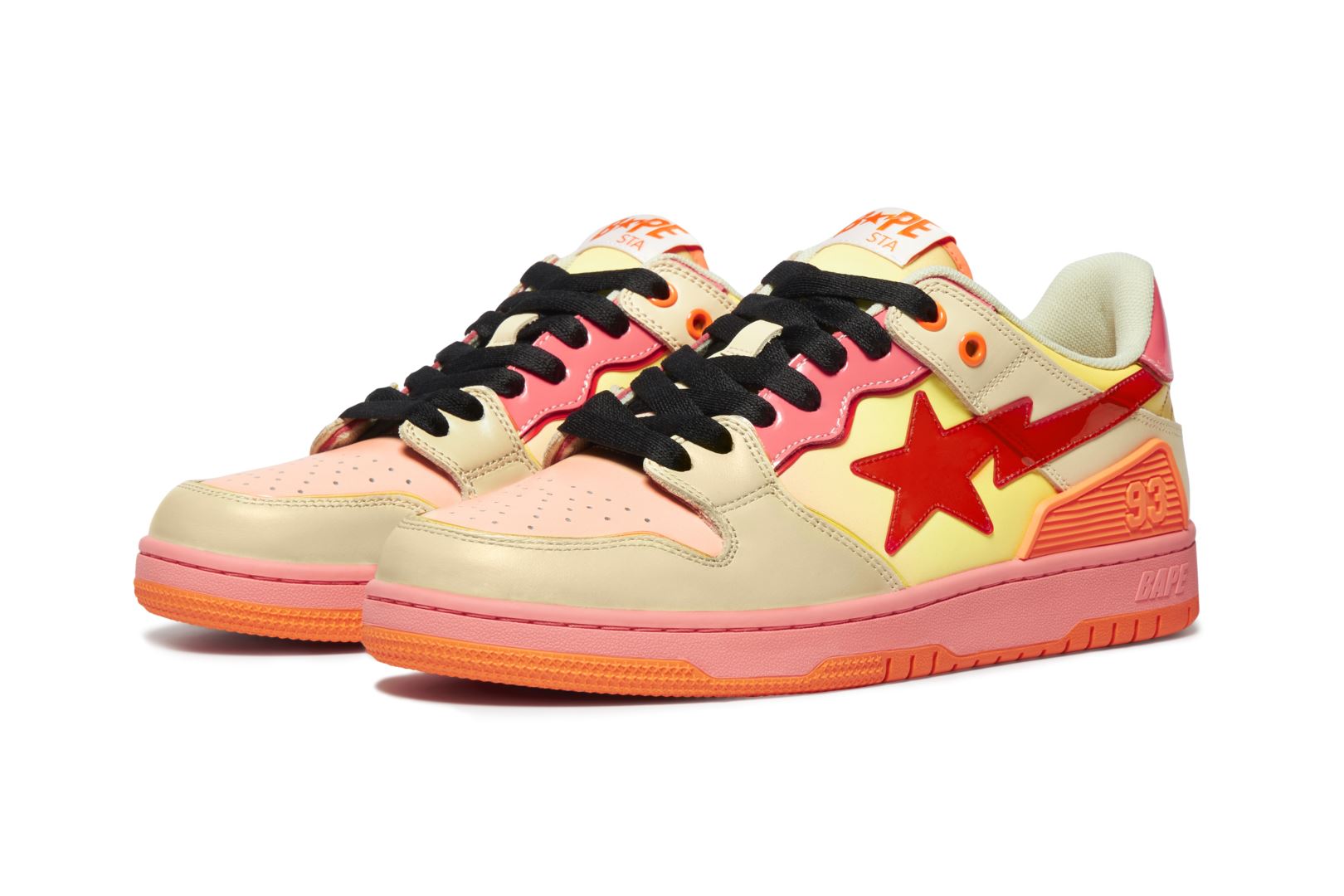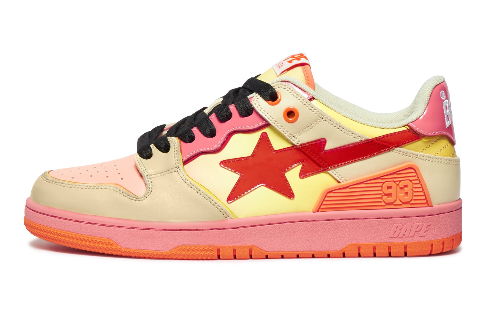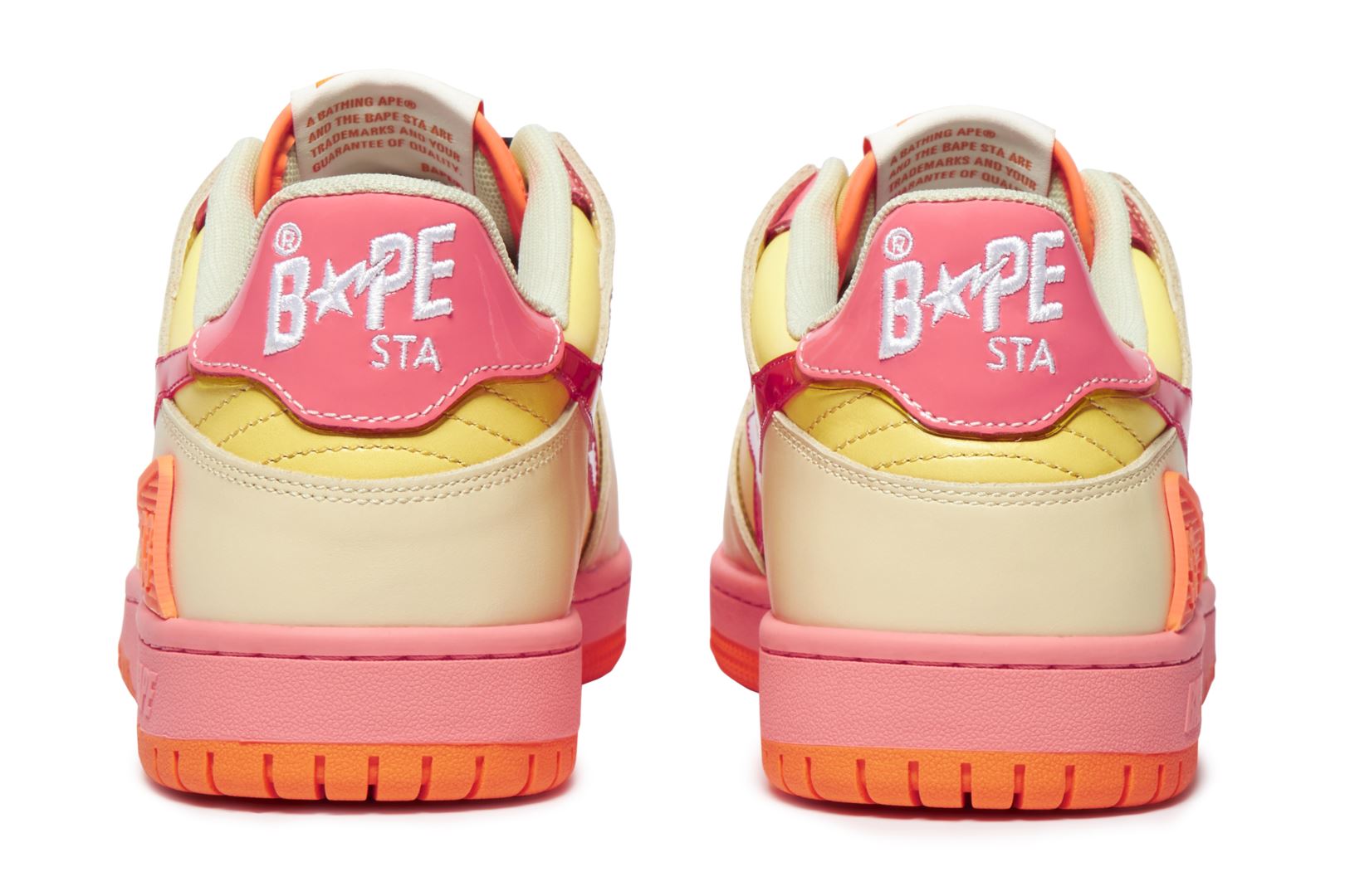 The brightly colored BAthtPE SK8 STA is available in three pop colors with pastel colors applied to the upper. Gradient colored leather and PVC parts throughout create an energetic design.