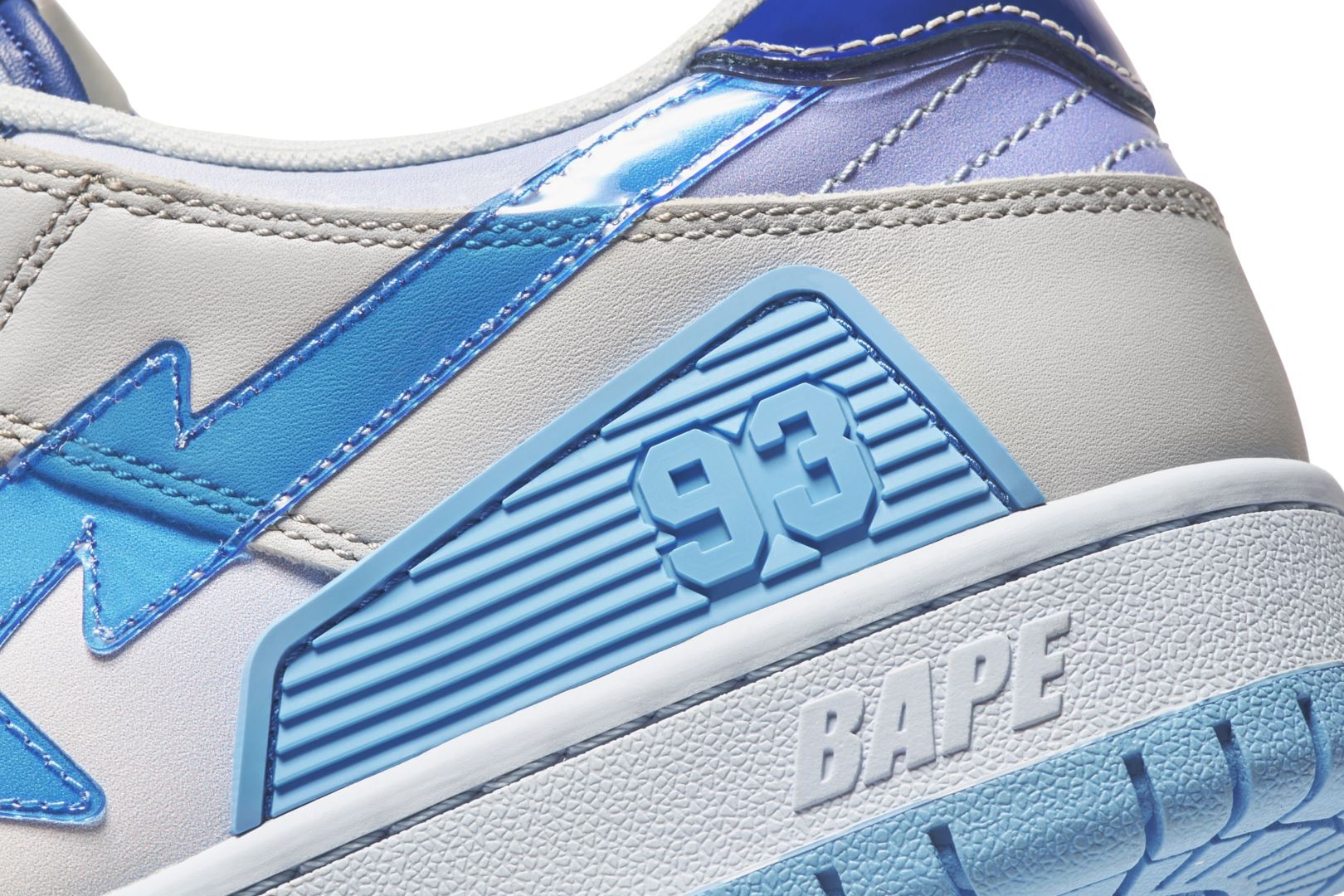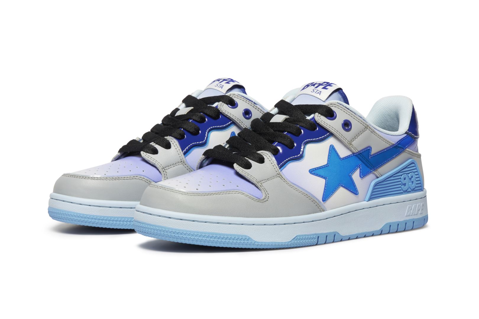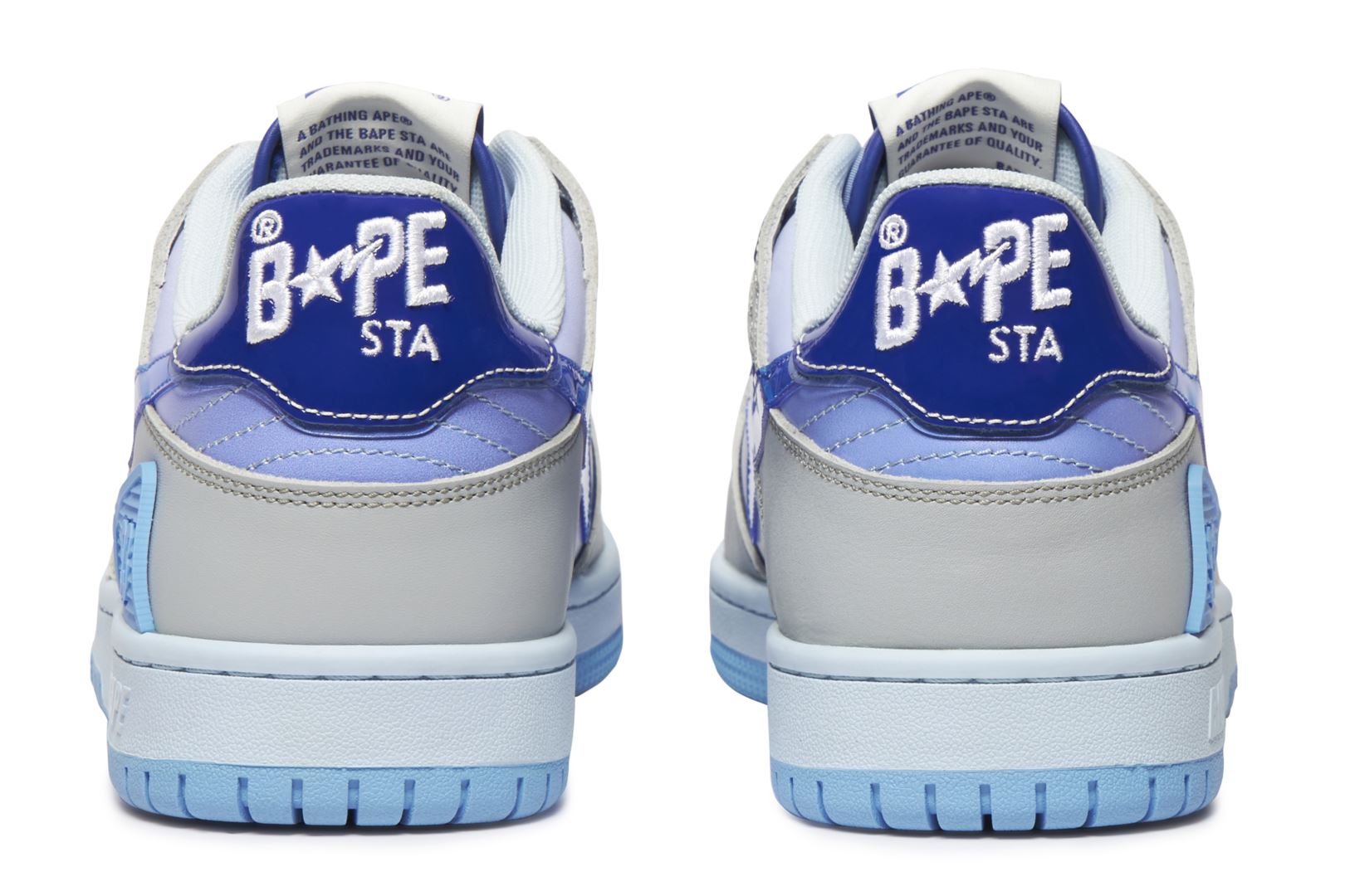 The brightly colored BAthtPE SK8 STA is available in three pop colors with pastel colors applied to the upper. Gradient colored leather and PVC parts throughout create an energetic design.
