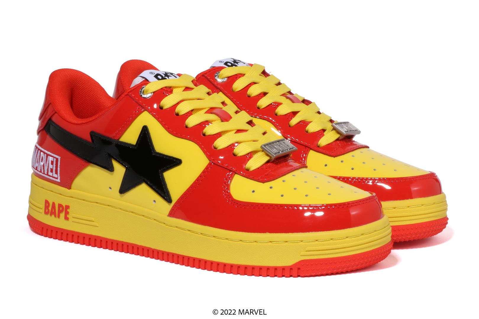 BAthtPE STA with patent leather upper. A reprint model of the 25-06 Marvel Comics collaboration. The Iron Man character is printed on the side of the left heel, and the outline is embossed. Marvel logo embroidery on the right heel. The blister pack packaging has also been revived, and the mount has been significantly updated. The insole has the same design as the mount, and the shoelaces are also equipped with a dubrae exclusive to this collaboration. Available in 1 color and 9 sizes: 7, 8, 8.5, 9, 9.5, 10, 11, 12, and 13. A collaboration model with Marvel Comics.