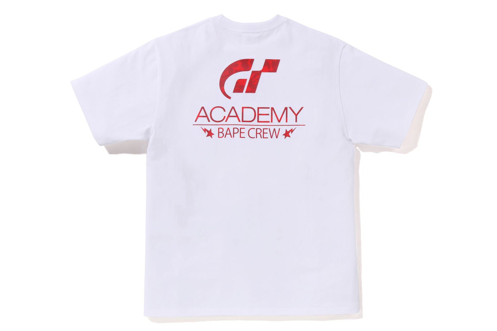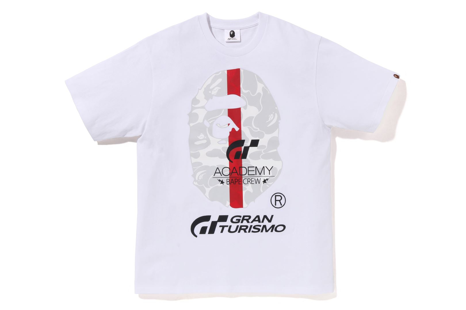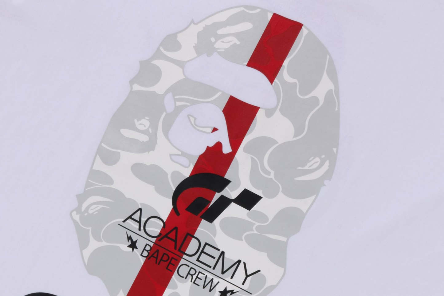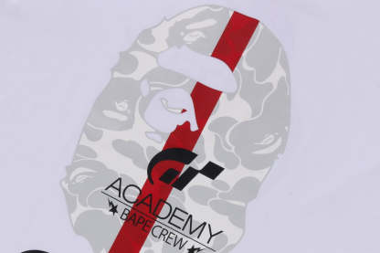 A large graphic print unique to the collaboration created from APE HEAD and the "GT" and "GT ACADEMY" logos. BAPE?? CAMO is arranged in the same color using black and white as the base color and red, which is inspired by a racing car, as the accent color. The name tag is also a special specification only for this collaboration.
