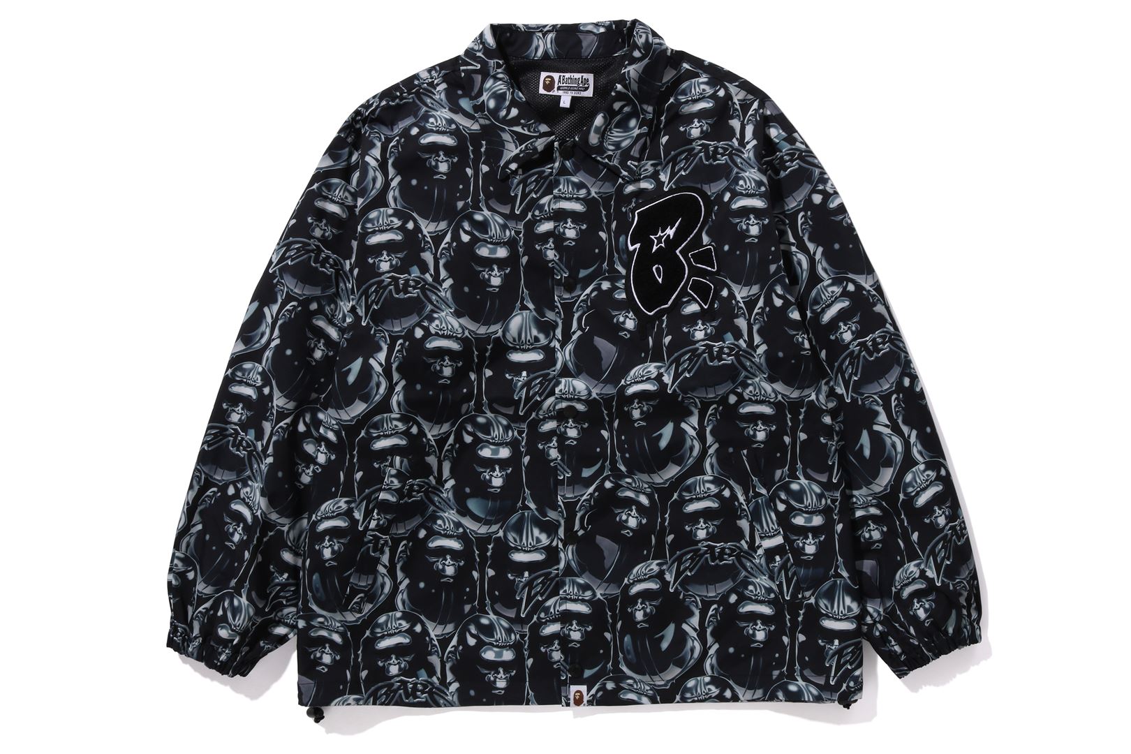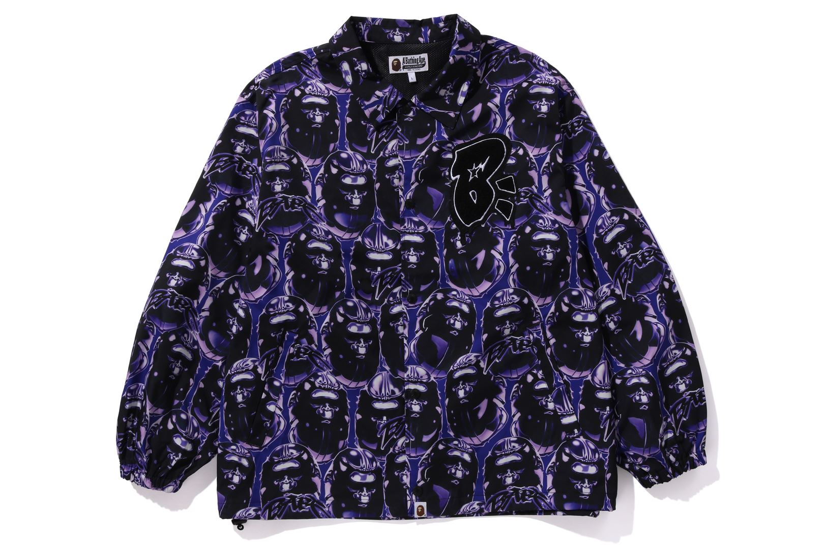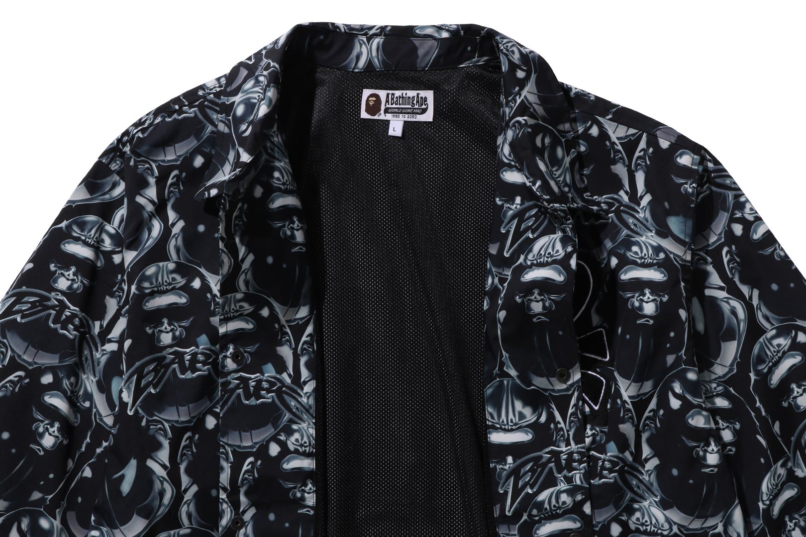 APE HEAD GRAFFITI A polyester coach jacket with an all-over print. A Sagara patch with the B logo is attached to the left chest, a slash pocket is attached to the left chest, and spindles are attached to both hems, allowing for adjustment of the seam. This is the center part of the skirt. He is tall and tall. Available in 2 colors and 5 colors.