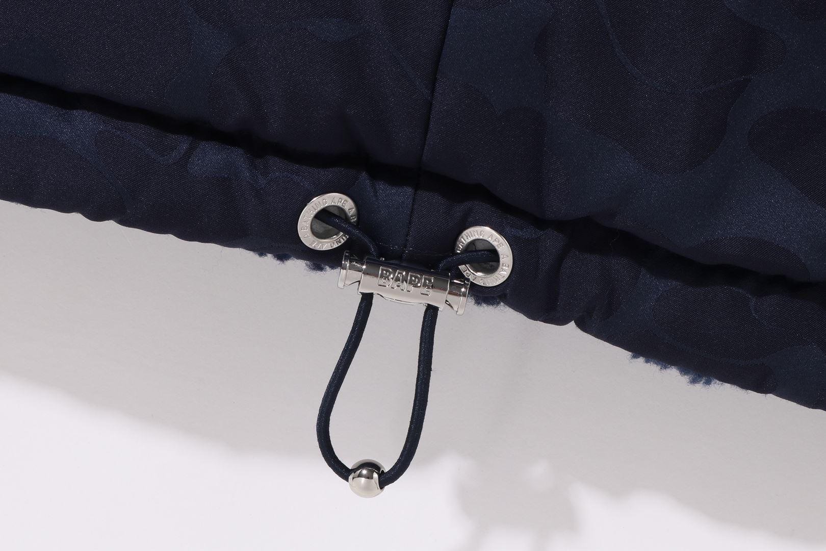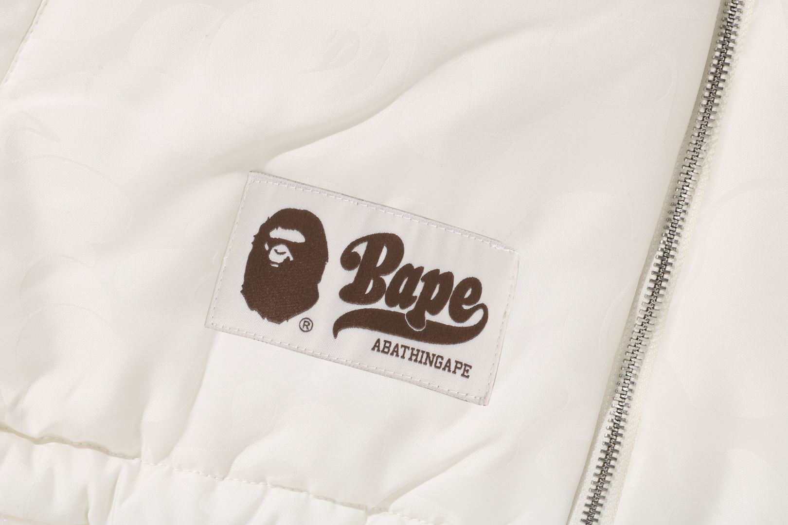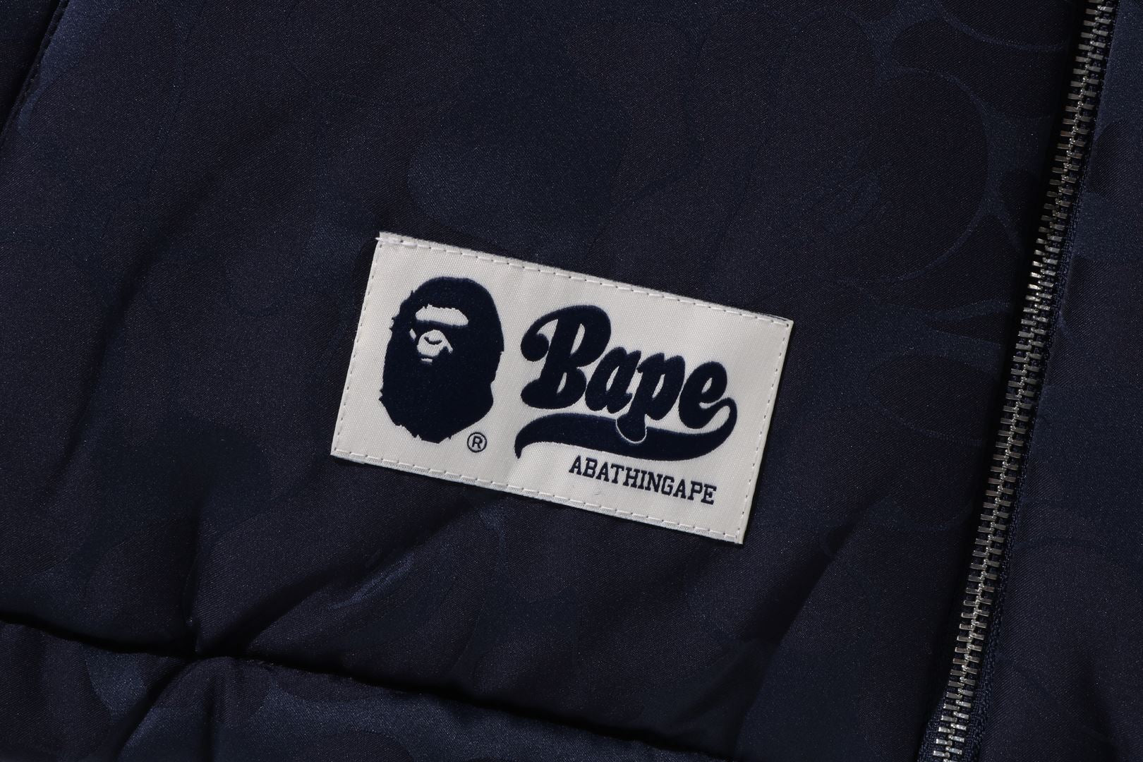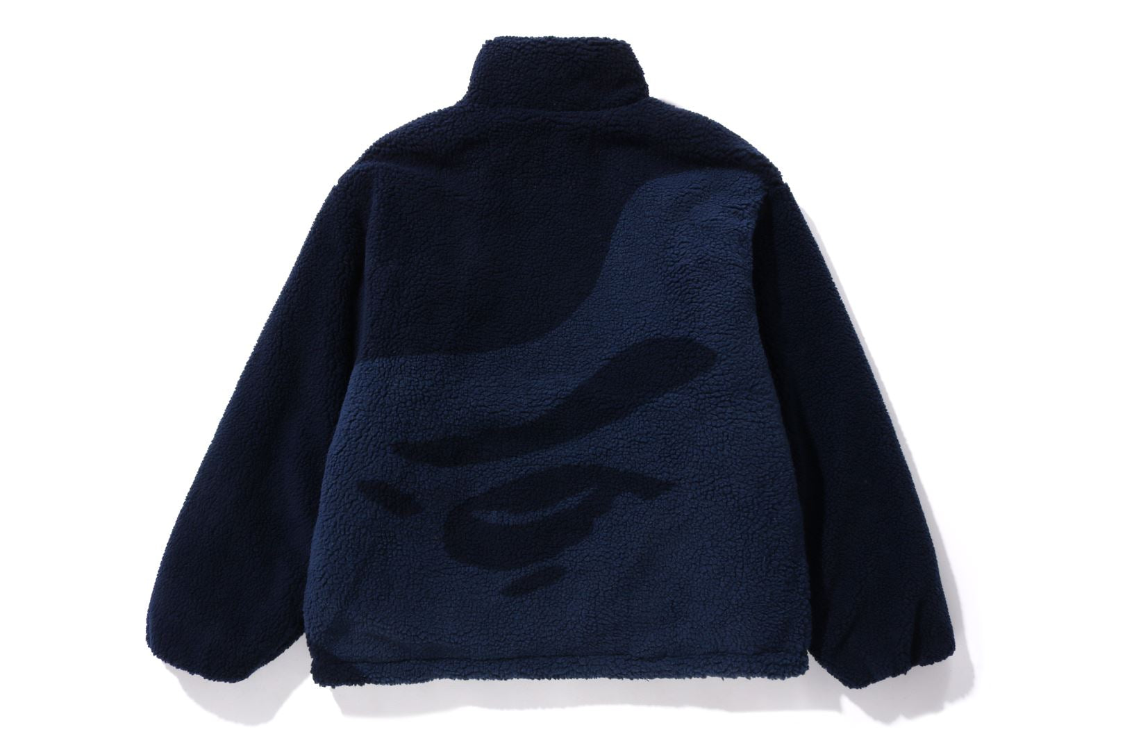 Reversible zip-up fleece jacket made of polyester boa material. The A side is designed with a cursive logo patch on the left chest and APE FACE expressed in jacquard on the back. APE HEAD charms are used on the front zipper and zipper heads on both side pockets. The B side is designed with an all-over APE CAMO pattern print. APE HEAD is directly embroidered on the left chest, and the woven name is embossed at the bottom center of the body. A silhouette with a relaxed fit. Available in 2 colors and 5 sizes.