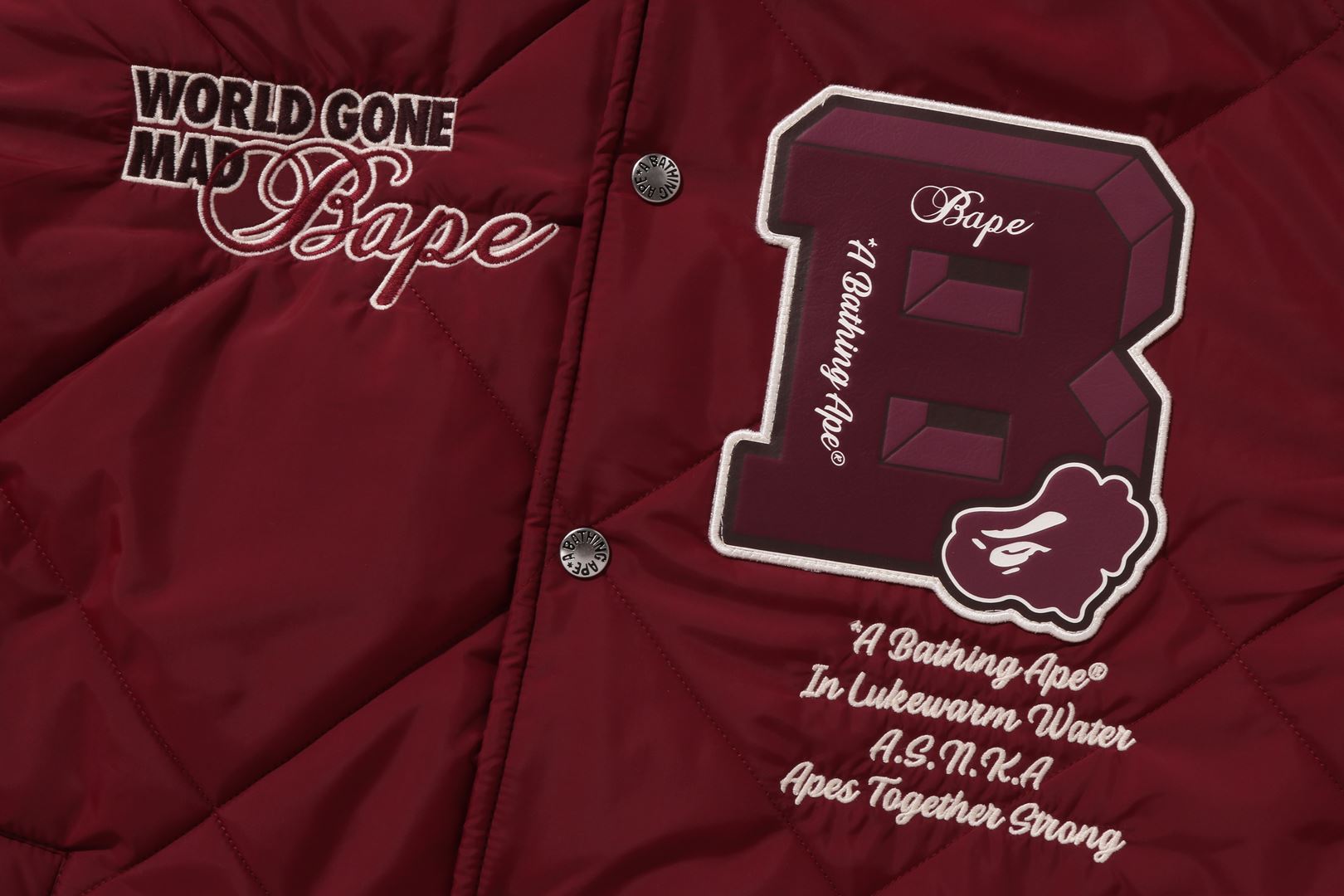 A coach jacket made of nylon material with a quilted pattern. The design features a B logo patch on the left chest, a circle patch on the right shoulder, a letter graphic on the left chest, and logo directly embroidered on the right chest. A piss name is sandwiched in the center of the hem, and a spindle is included. A silhouette with ample width. Available in 2 colors and 5 sizes.