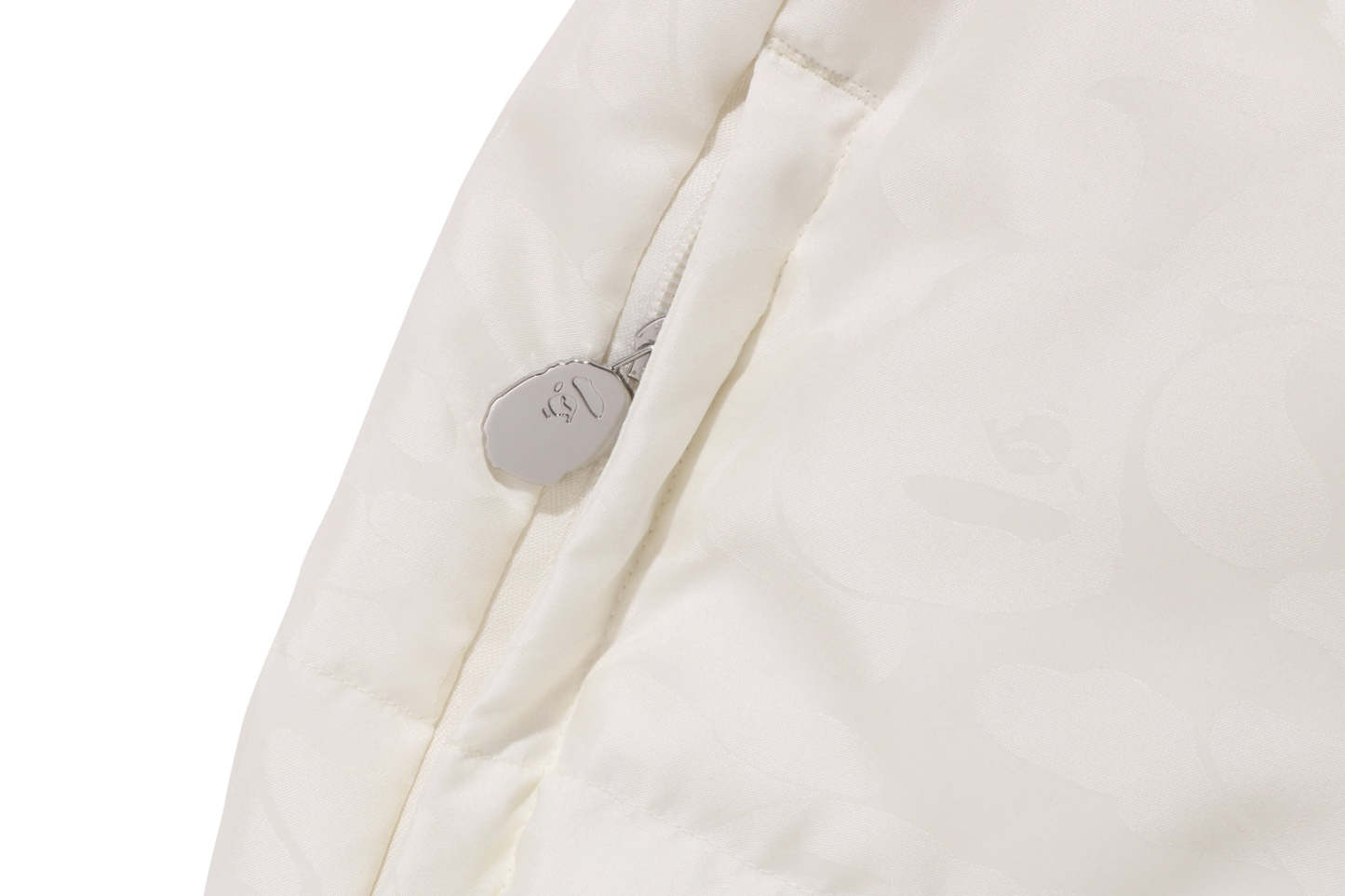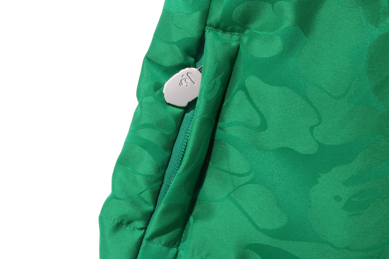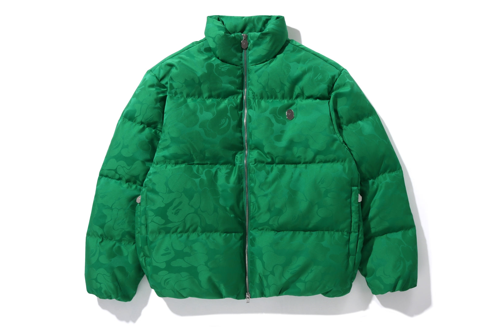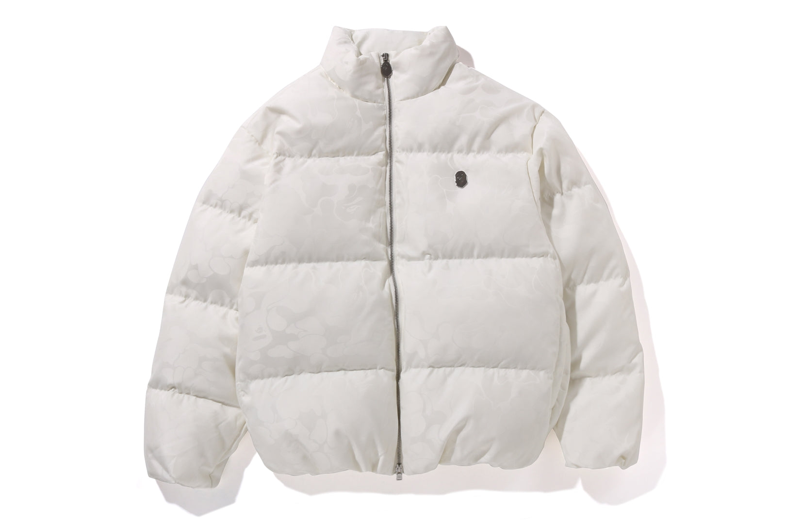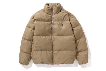 A puffer jacket made of nylon material with a TONAL SOLID CAMO pattern. The padding uses KAWADA DOWN from Kawada Feather to provide high cold protection (90% down, 10% feather, 700FP). APE HEAD one-point metal charm on the left chest, APE HEAD charm on the front zipper and zipper heads on both side pockets. Comes with rubber spindles on both hems for size adjustment. A silhouette with a relaxed fit. Available in 5 colors and 5 sizes.