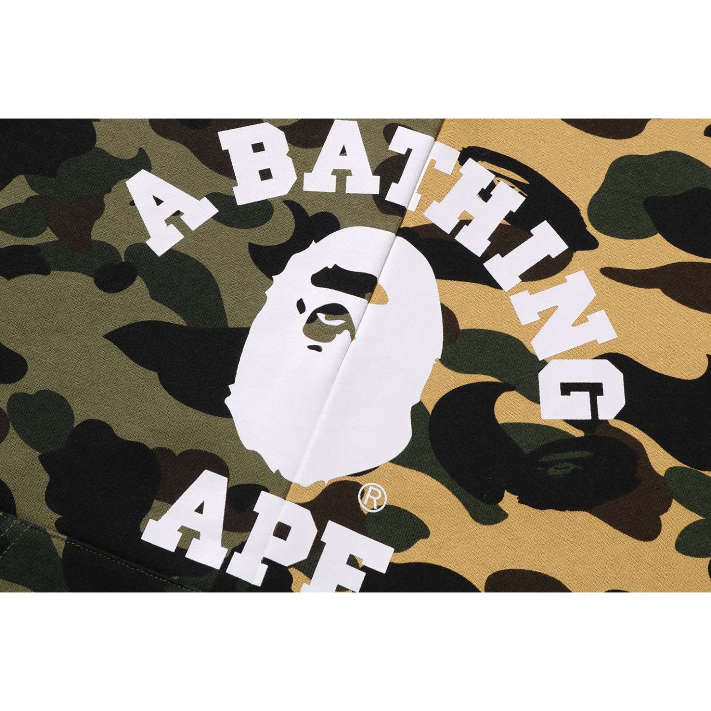 This pullover hoodie features a bold two-tone 1ST CAMO design crafted from soft brushed cotton fleece. It showcases a striking COLLEGE logo in rubber print on the chest and includes an adjustable hood with drawstrings for a personalized fit. Designed with a regular silhouette, it combines comfort with a fearless style statement.