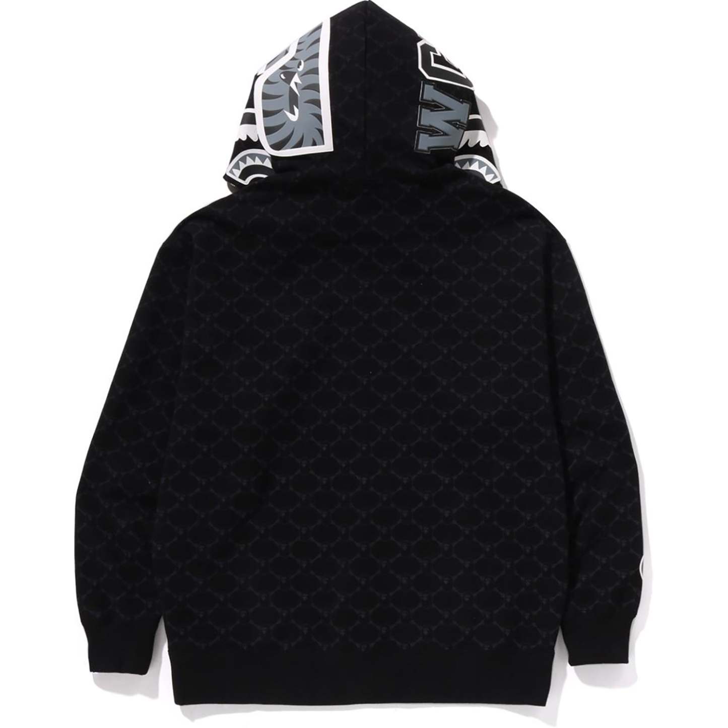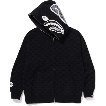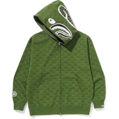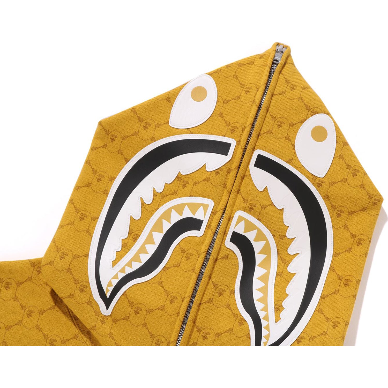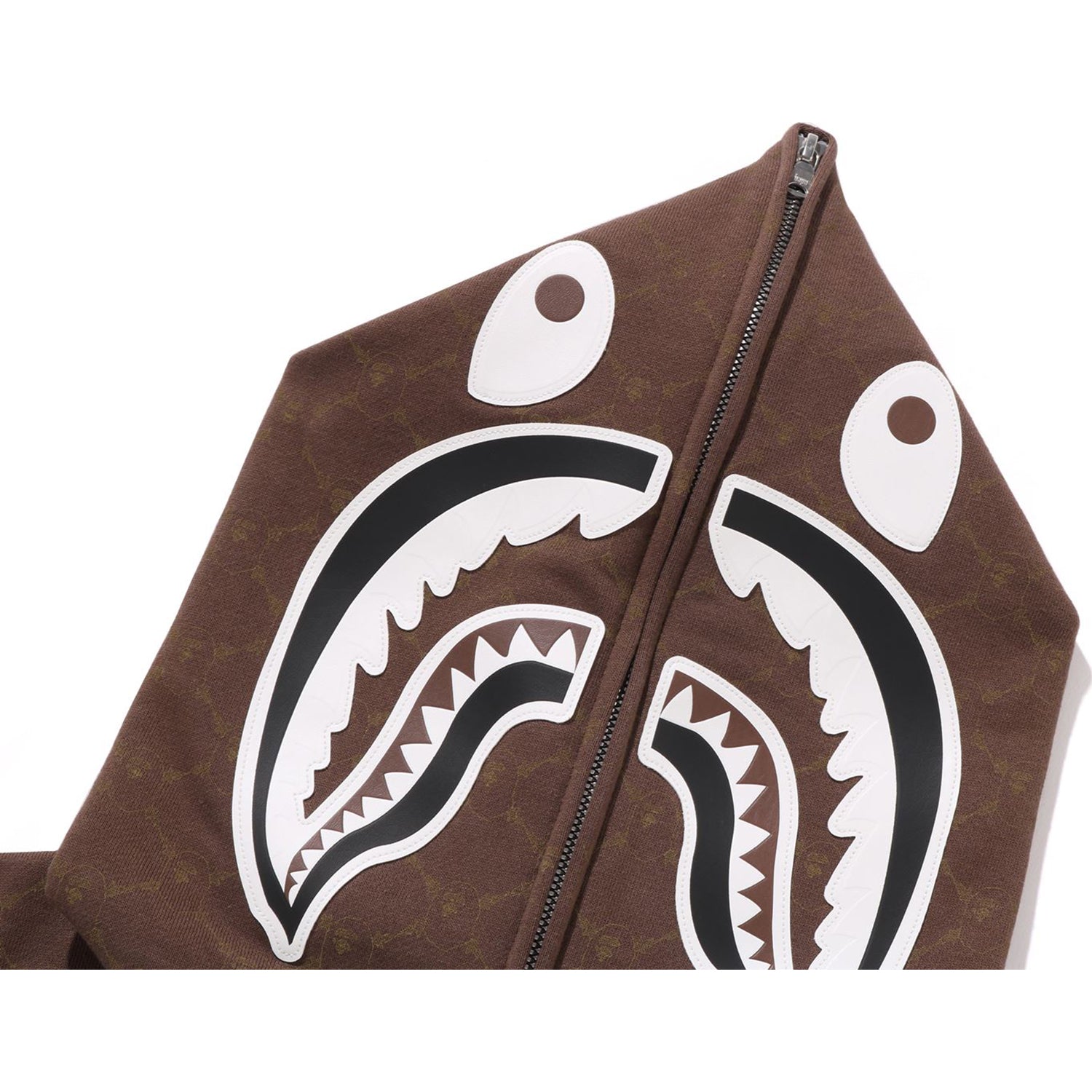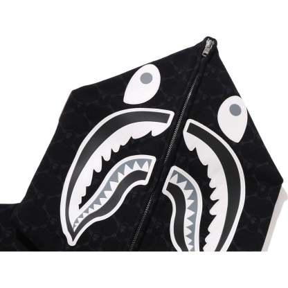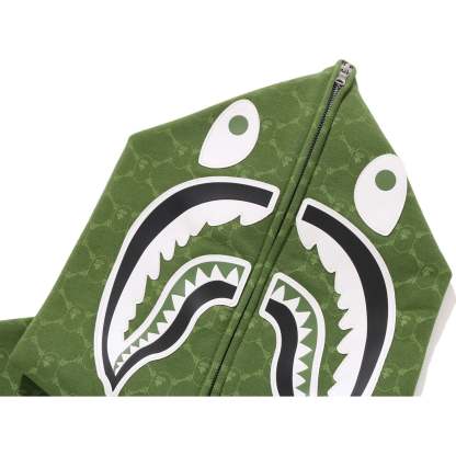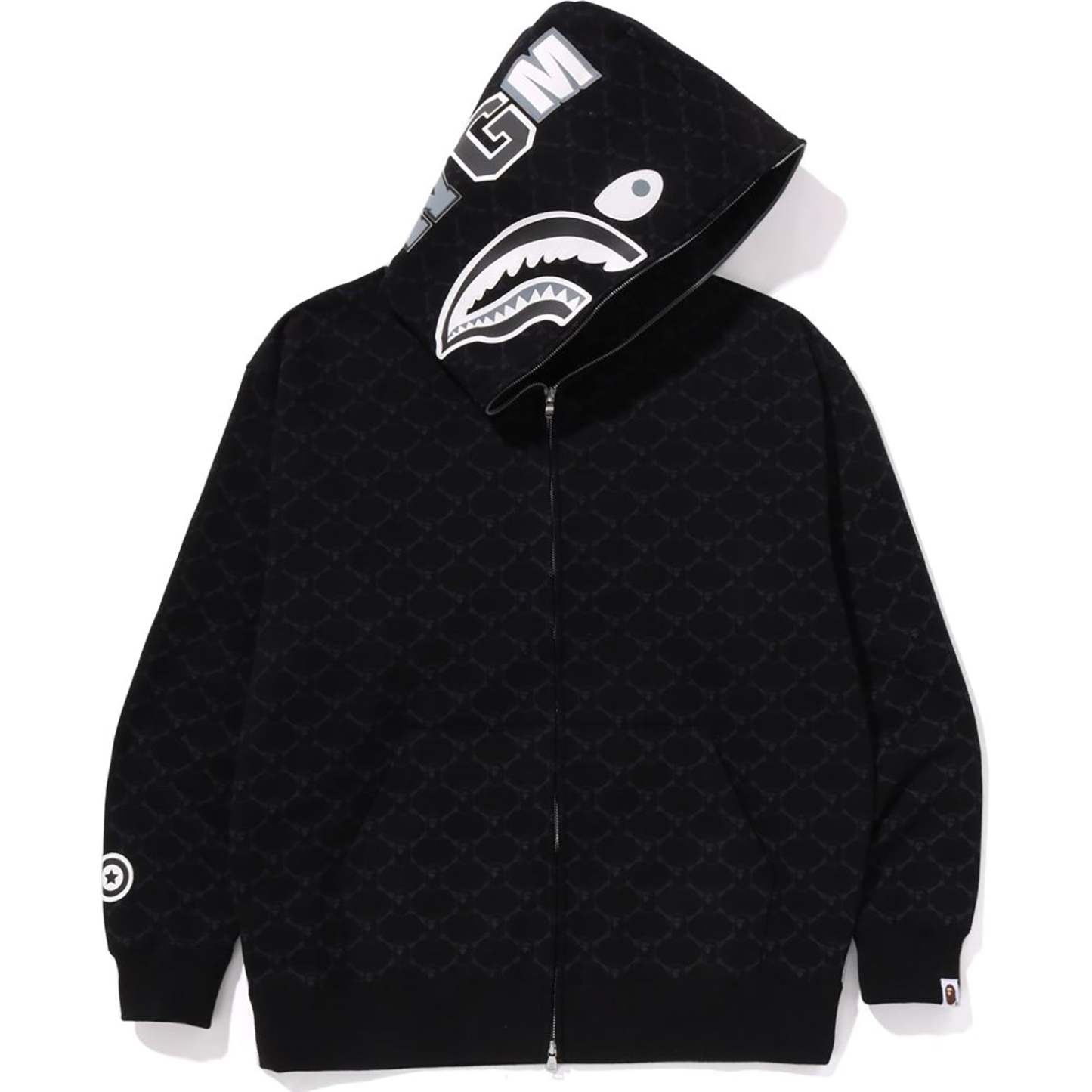 This full-zip hoodie from A BATHING APE’s 2025 Spring/Summer collection features a relaxed fit and soft brushed cotton fleece for comfort. It showcases the new COLLEGE MONOGRAM pattern blending the iconic APE HEAD and BAPE STA, with a distinctive SHARK patch on the hood for a standout look. Perfect for fans of campus-inspired style.