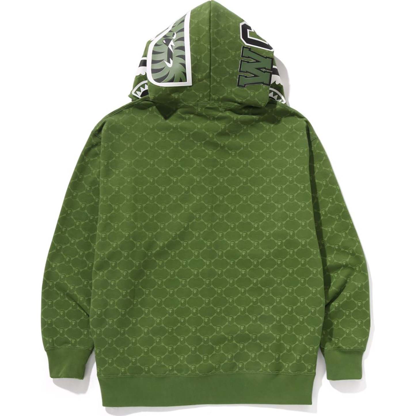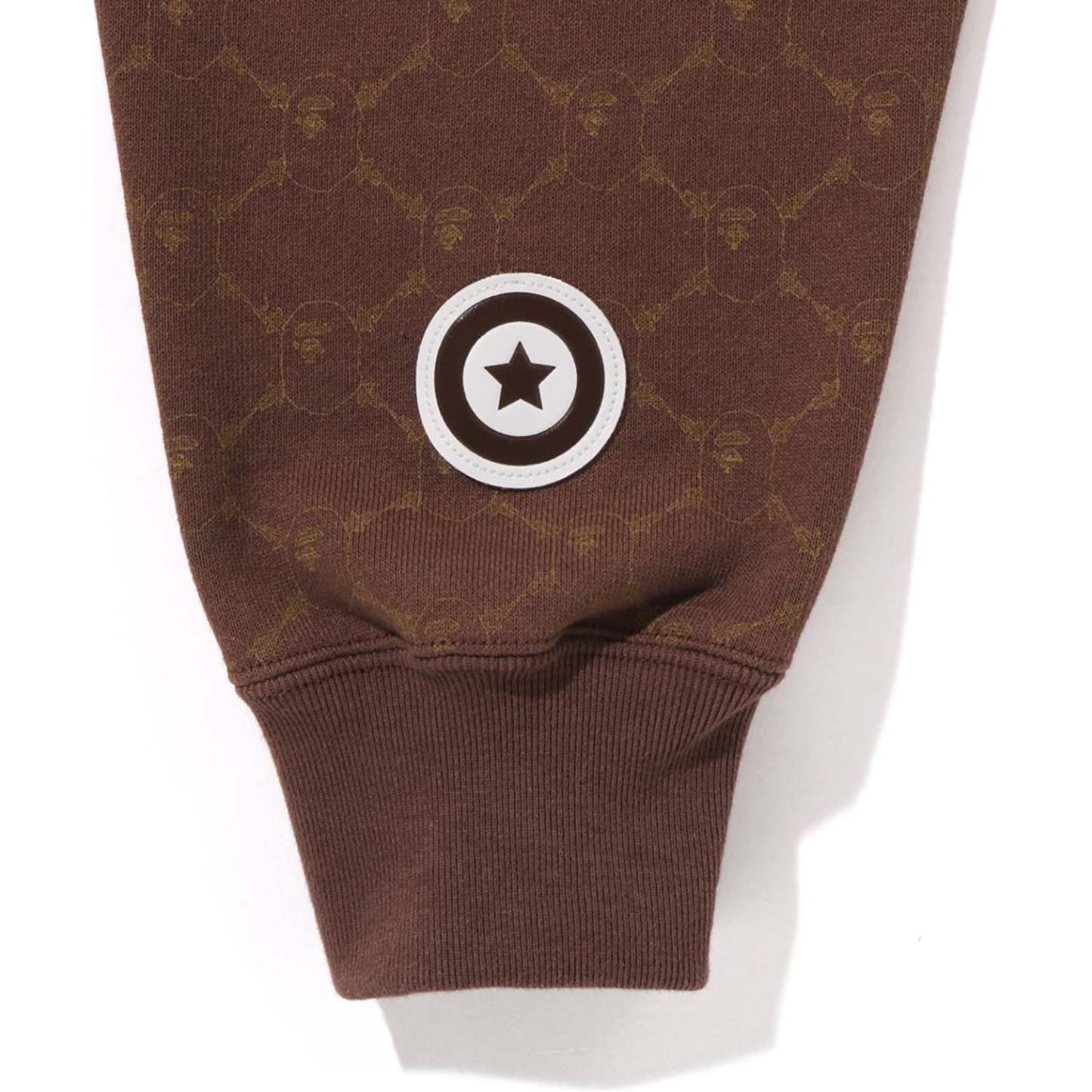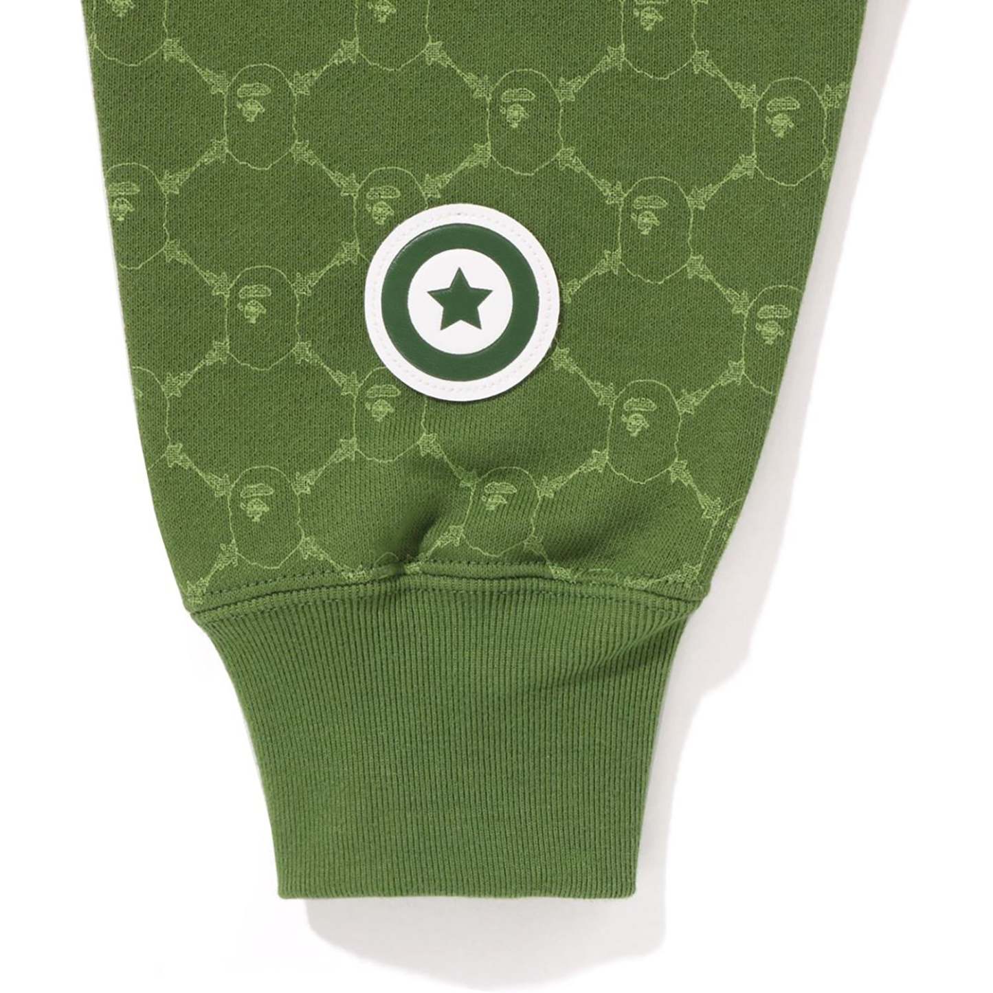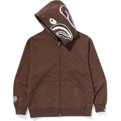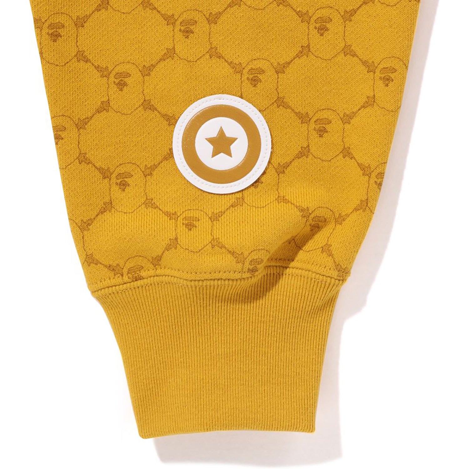 This full-zip hoodie from A BATHING APE’s 2025 Spring/Summer collection features a relaxed fit and soft brushed cotton fleece for comfort. It showcases the new COLLEGE MONOGRAM pattern blending the iconic APE HEAD and BAPE STA, with a distinctive SHARK patch on the hood for a standout look. Perfect for fans of campus-inspired style.